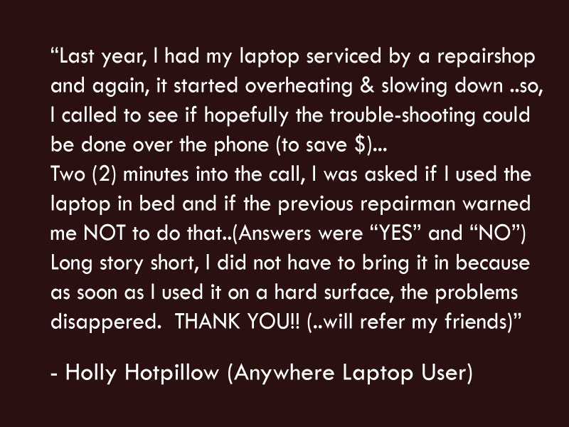 Over the past 15+ years repair experience that began with simple memory upgrades, malware removal and the occasional OS tweaks for performance, the services offered has dynamically grown to include newer handheld devices like smartphones and tablets and retainer-based webmastering: content management, design, construction & backend maintenance.